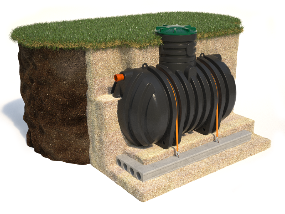 Этот вариант — самый простой. Септик представляет собой прочный герметичный резервуар для накопления сточных вод. После того, как емкость наполнится, стоки удаляют с помощью ассенизационной техники. Затем отходы утилизируются. Вместительность накопительного бака варьируется в пределах 1-40 м3. Удобны модели, оснащенные специальными датчиками, сигнализирующими о наполнении. Ребра жесткости делают конструкцию более надежной и прочной. Область применения накопительных емкостей — дачные участки с сезонным проживанием или небольшие частные дома с малым объемом стоков.