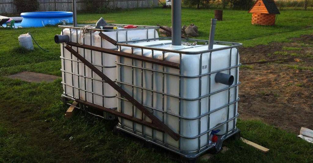 Еврокубы удобны для изготовления септика в местах с высокими грунтовыми водами: они отличаются вместимостью, удобной для монтажа формой, надежной обрешеткой, которая может выдерживать большие нагрузки. Единственный нюанс – высокий уровень грунтовых вод приводит к выталкиванию изделия наружу, потому для обустройства делают бетонный фундамент и прикрепляют конструкцию.