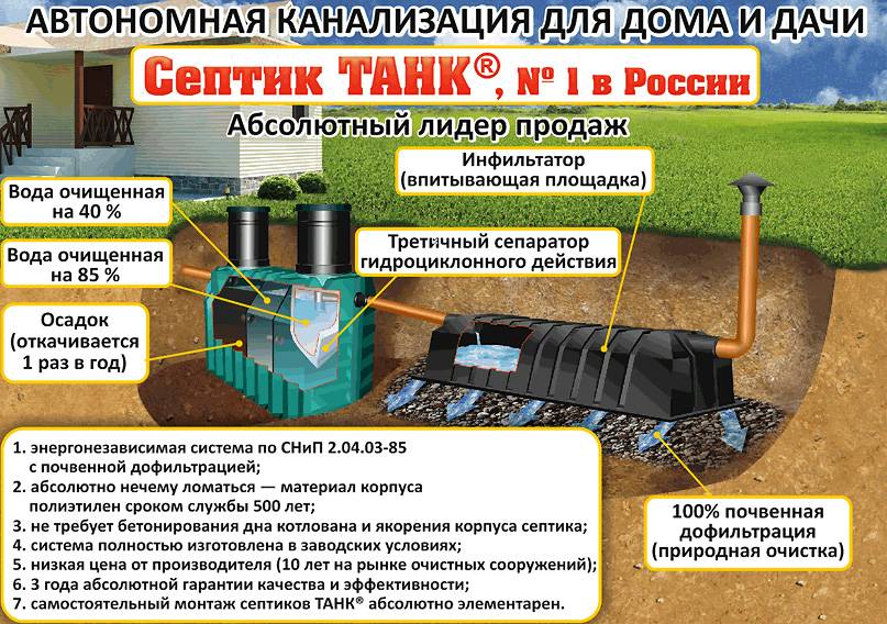 - Все обслуживание очистительной системы на базе септика Танк заключается в вызове один раз в год ассенизатора;