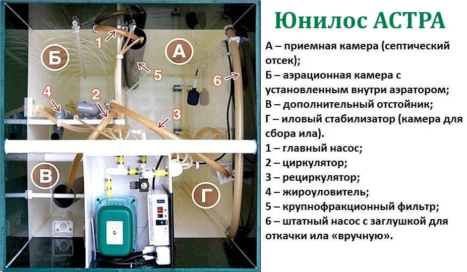 Астра. В данных септиках предусматривается анаэробная очистка. Производительность составляет 1-1,5 м3 в сутки. Септик способен обеспечить проживание в доме до 4-5 человек в постоянном режиме. Цена устройства составляет 75000-82000 рублей.