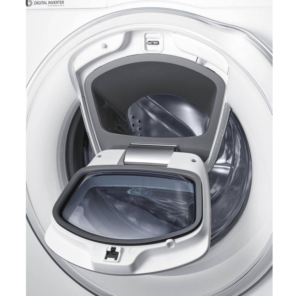 - Наличие дополнительной дверцы AddWash. Она позволяет добавлять вещи в барабан в процессе стирки, на этапе полоскания или отжима.