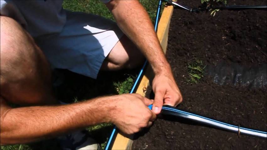 Для начала нужно приобрести в любой лавке сельскохозяйственных товаров рукав с отверстиями. Для выделки отверстий можно использовать нагретый гвоздь. В основной шланг поместить отводы. Их длина должна составлять около 20-30 см.