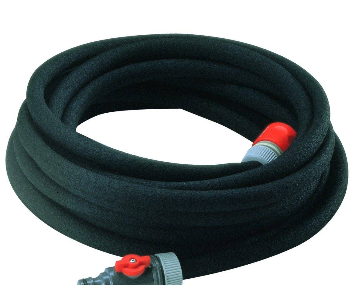 Подобный шланг очень удобен для капельного полива без монтажа сложной и дорогой системы – достаточно подключить его к водопроводу через фитинг, расстелить вдоль грядки или клумбы и повернуть кран-задвижку на трубе.