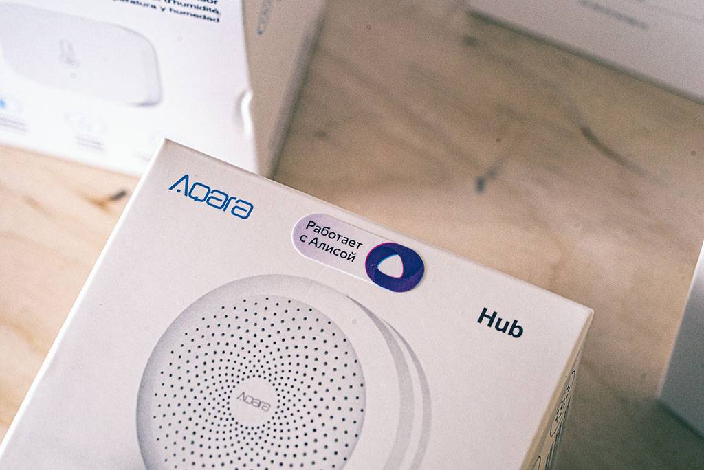 Работоспособность такой системы обеспечивается головным устройством Aqara Hub с маркировкой HomeKit, к которому подключаются все прочие ZigBee-устройства.