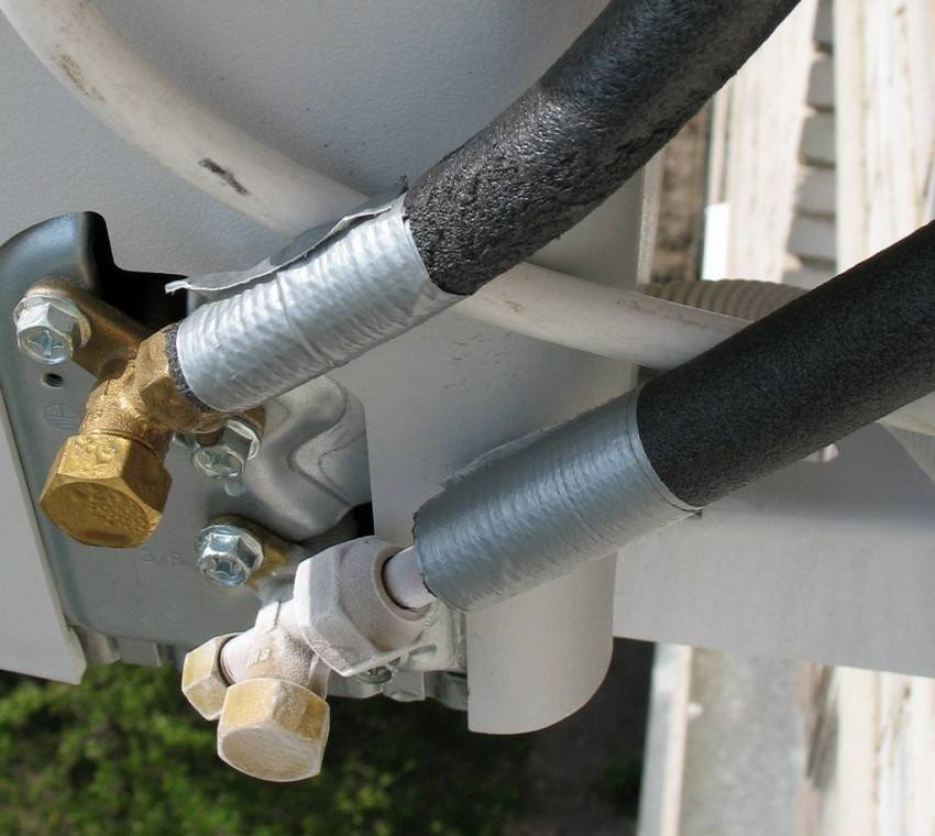 Теперь можно уложить трубки в магистраль. Предварительно на трубки надевается теплоизоляция и закрепляется скотчем. При укладке медных магистралей соблюдайте следующие правила: